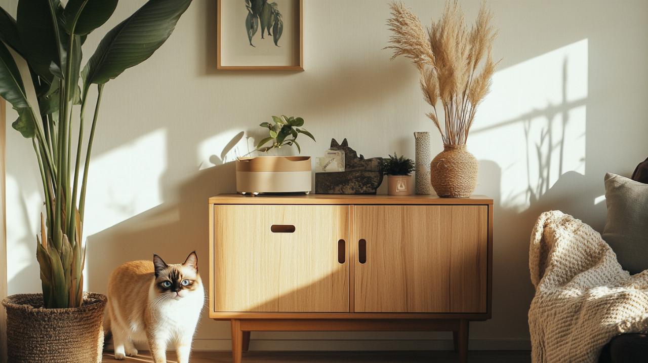 Functionality should never be sacrificed for aesthetics. Adequate ventilation is essential to prevent odours from accumulating inside the cabinet. Drill several small holes in the back or sides of the unit, or incorporate a decorative lattice panel that allows air to circulate freely. Position these vents discreetly so they do not detract from the overall appearance. Easy access for cleaning is another critical consideration. A hinged door or removable panel will allow you to reach inside to change the litter and clean the tray without difficulty. Magnetic catches or simple latches can keep doors securely closed whilst remaining easy to open. If your design includes feeding stations for cats or dogs, ensure these are at a comfortable height and can be accessed without disturbing the litter area. Thoughtful details such as a removable tray or a washable liner can further simplify maintenance and prolong the life of your handmade creation. By focusing on both form and function, you will create a tailored pet solution that meets your cat's privacy needs whilst contributing to a harmonious and stylish living environment.